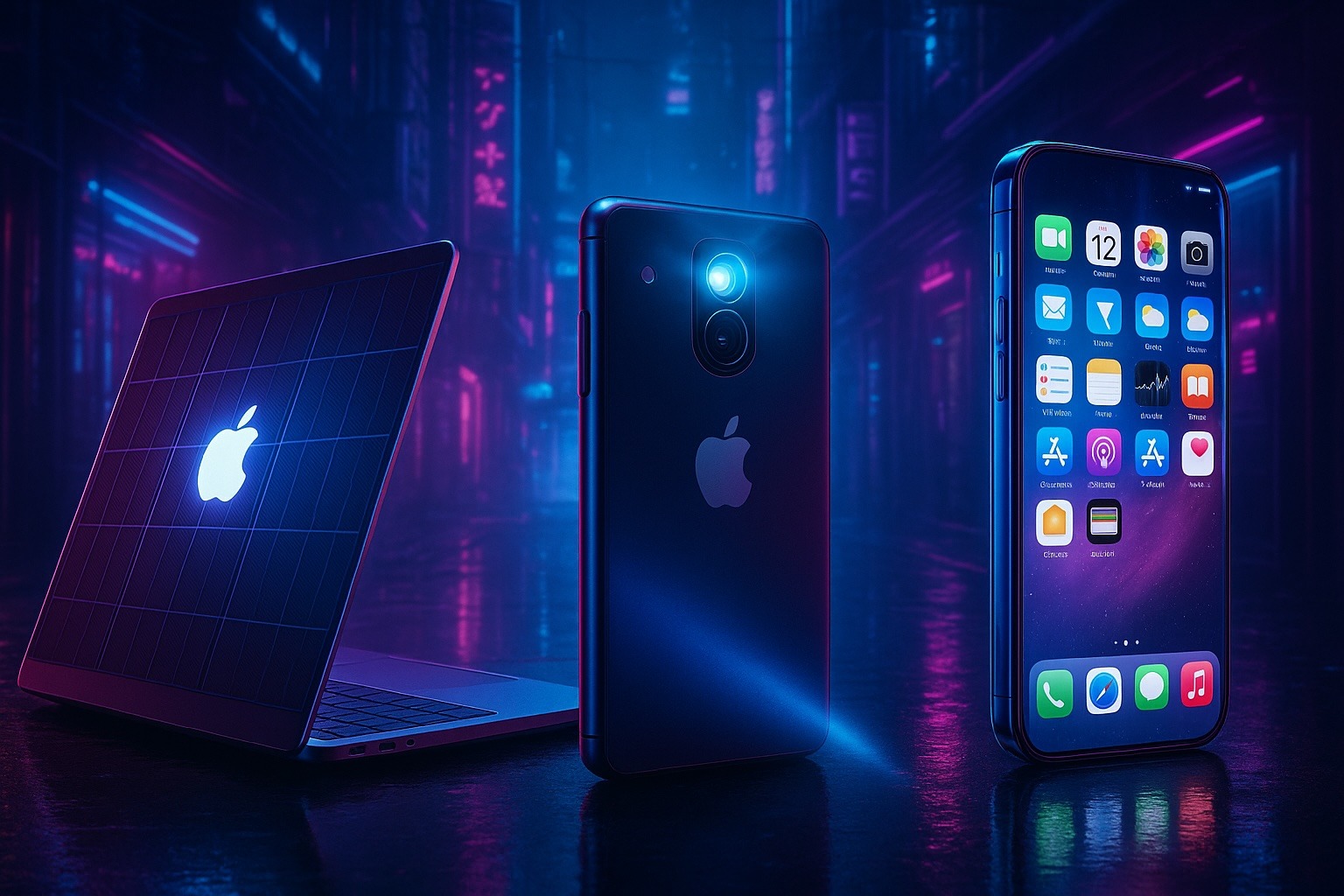 Apple’s patent describes a MacBook lid embedded with photovoltaic panels under electrochromic glass. Translation: a laptop that drinks sunlight while you work.