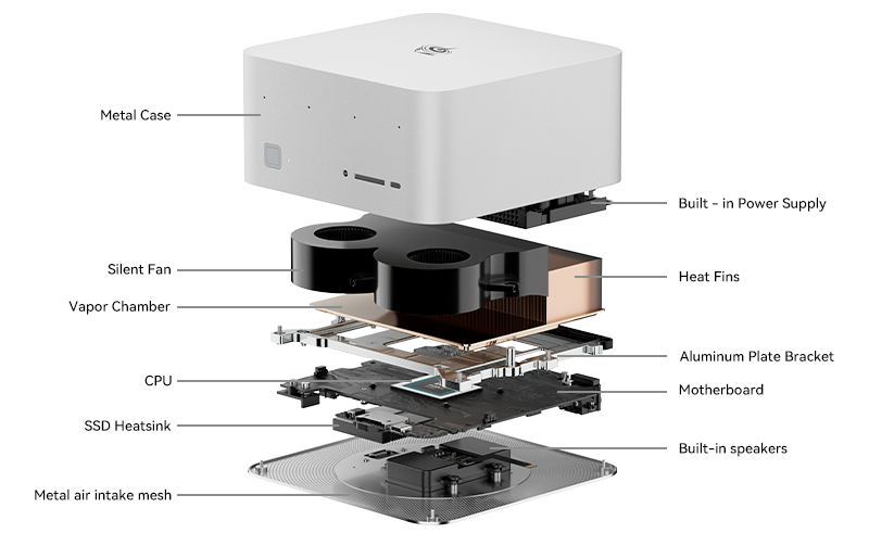 Cooling? No noisy fans, Beelink’s MSC 2.0 dual-turbine + vapor-chamber setup keeps 140 W loads whisper-loud at ~32 dB.